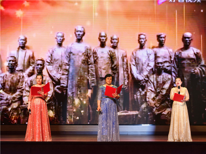 开篇诵读者以中国共产党百年历程为序言,总结了党的百年是用鲜血、汗水、泪水、勇气、智慧、力量写就的百年;是筚路蓝缕、披荆斩棘、艰苦创业、砥砺前行、充满艰险、充满神奇的百年;是苦难中铸就辉煌、挫折后毅然奋起、探索中收获成功、失误后拨乱反正、转折中开创新局、奋斗后赢得未来的百年。