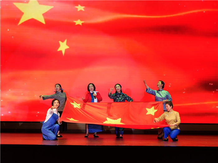 展演的尾声在精心设计的“爷爷”“母亲”“女儿”三代人的情景对话中开始,以赓续红色基因、传承革命精神为主题,通过作为国产亚洲精品美女久久久_99久无码中文字幕一本久道_亚洲成AV人影院_亚洲AV影院一区二区三区 狠狠躁夜夜躁人人爽天天不卡_国产激情久久久久影院老熟女_精品性高朝久久久久久久退休老教师的外祖父、现任在职教师的妈妈和附属小学学生的女儿三个角色对于中国共产党的认识、对于新时代的认识,呼应开篇、歌颂伟大的党和新时代中国,呈现“永远跟党走”的主题和中国共产党“百年芳华正当时”的内涵。《千秋伟业·百年芳华》是展演的最后一个作品,“复兴筑梦、凝聚力量,华夏儿女、同心向党,人民至上、再创辉煌”的美好祝愿将展演推向高潮。展演在全体在场人员《没有共产党就没有新中国》的合唱中圆满结束。