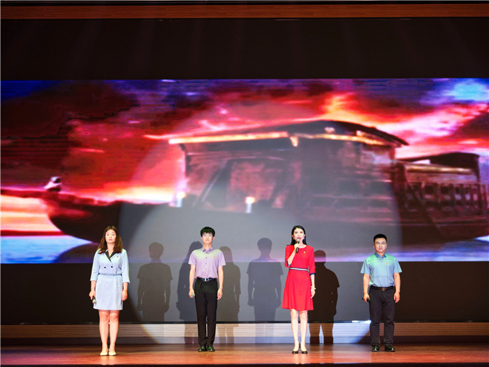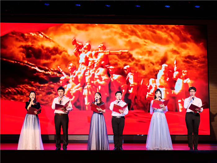 后勤系统工会选送的《百年心向党·奉献新时代》充分利用多媒体背景,既歌颂了党的丰功伟绩,也倾诉了后勤人热爱学校、建设学校、为办好人民满意教育奉献青春与汗水的满腔热忱;《夏明翰家书》由电气与动力工程学院的学生诵读,作品以实景造型的形式,将观众带回了那个白色恐怖的年代,展示出主义和信仰的强大力量;图书信息工会选送的《颂歌献给党》通过几位老师的深情诵读,唱响了对党无比忠诚、信仰无比坚定的颂歌;方志敏烈士《可爱的中国》由材料科学与工程学院的师生共同诵读,把现场观众带入到不忘初心、永记先烈、牢记使命、开创未来的氛围中,坚定了大家奋进新时代、实现新跨越的信心和决心。