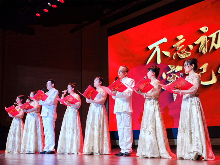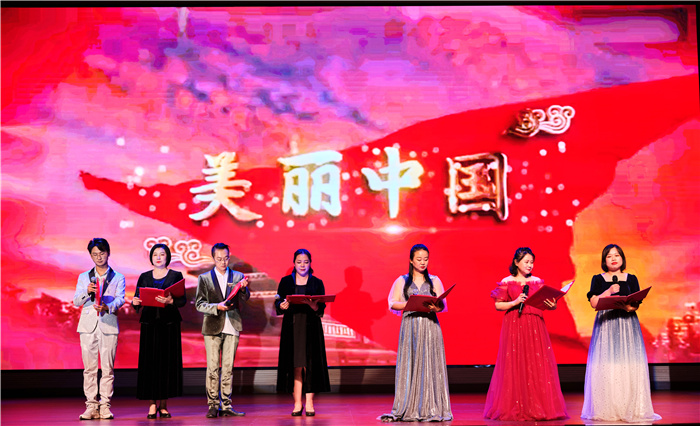 《党旗飘飘》《青春中国》分别由体育学院工会、马克思主义学院工会选送,体现了毛泽东同志在《体育之研究》中的“体育之效”的启示意义,彰显了当期之下青春中国的发展进步,制作精美的诵读背景深深吸引了现场观众;机关工会选送的人物群像情景剧《追寻·丰碑·大地》,以讲述人加人物群像的形式,展示了从张人亚、周文雍到申纪兰、黄文秀,从分别处于青年时期的毛泽东、邓小平到习近平、周恩来,从程开甲到袁隆平等不同时期的英雄人物光辉事迹和不同阶段国家领导人的领袖风范;软件学院工会选送的《家书情·爱国心·报国行》通过“两弹一星元勋”邓稼先写给妻子、“中国杂交水稻之父”袁隆平写给亡母等信件的诵读,讲述了伟大而统一的家与国的情怀;轻纺工程学院工会选送的《美丽中国》,勾勒出了一幅生动的美丽中国画卷,描绘了如花的中国、如画的中国。